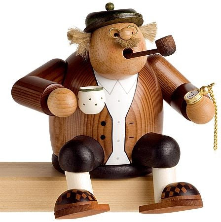 小さな、考え込んだ顔でタバコをふかすお人形。19世紀の初頭には、既にクリスマスのデコレーションとして登場していました。1800年頃に書かれたおもちゃの本では、紙でつくられたスモーカーが紹介されていたそうです。1820-1830年頃には、パルプでできた煙出し人形がつくられたという記録もあります。
